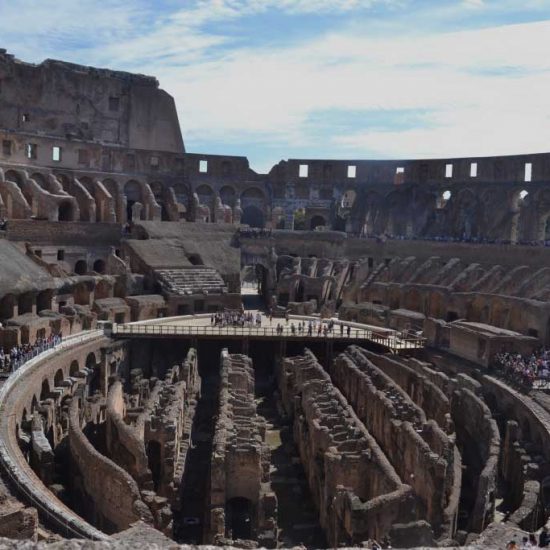 After your aperitivo, you’ll follow your guide, a Ph.D in Archaeology, towards the Colosseum. Built by the Flavian dynasty, the Colosseum was an amphitheater, an open-air venue used for entertainment, performances, and sports. As opposed to the traditional Greek and Roman theaters, built in semicircle with tired seating rising only on one side, the Colosseum has tiers that surrounded the central performance area, like a modern open-air stadium.